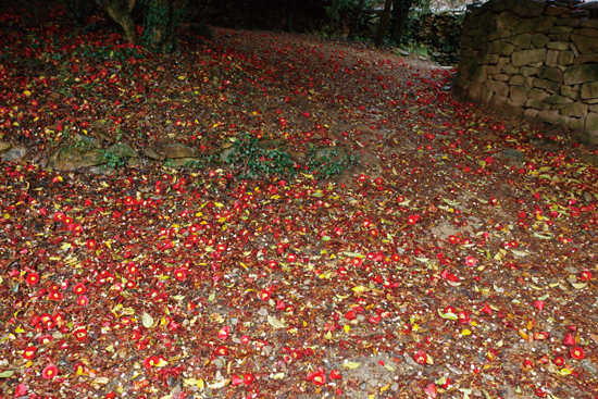 그곳에 들어서면 가장먼저 동백꽃이 사람을 반긴다. 동백꽃의 백미는 만개했다가 땅에 떨어진 모습이다. 4월이면 사라질 꽃송이지만 마지막까지 흐트러지지 않고 아름다운 자태로 남아있기 때문이다.