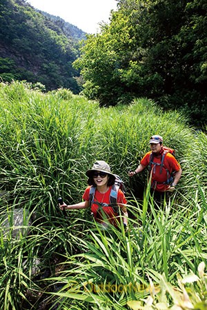 동료가 외치는 소리에 고개를 들었다. 그 순간 기암괴석으로 이루어진 절벽과 울창한 수풀의 어울림이 폭죽에 터지는 불꽃 마냥 두 눈에 쏟아진다. 파노라마처럼 펼쳐지는 비경에 숨이 막힐 정도다. 이곳을 내설악에 버금가는 아름다운 계곡이라 칭하는 이유가 거기 있었다.