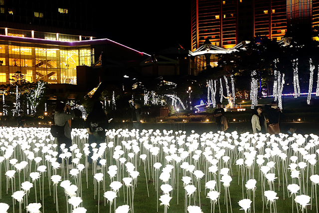 밤이 되면 LED 장미꽃의 은은한 조명 효과로 관광객들에게 로멘틱한 추억을 선사하는
